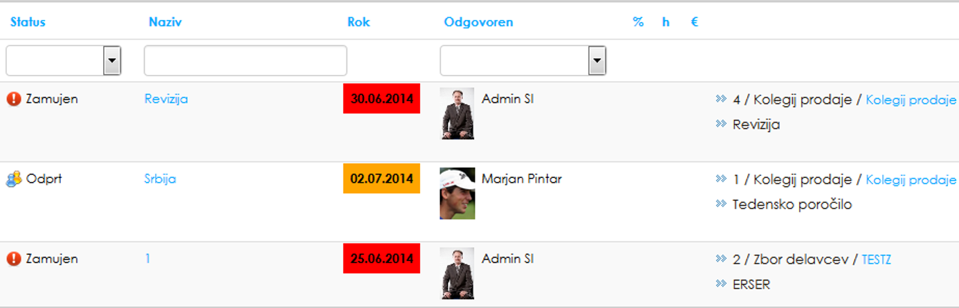 - Skupina Don don (Plan, Nadzorne plošče, Poročila, Projekti, Sestanki, Konsolidacija)